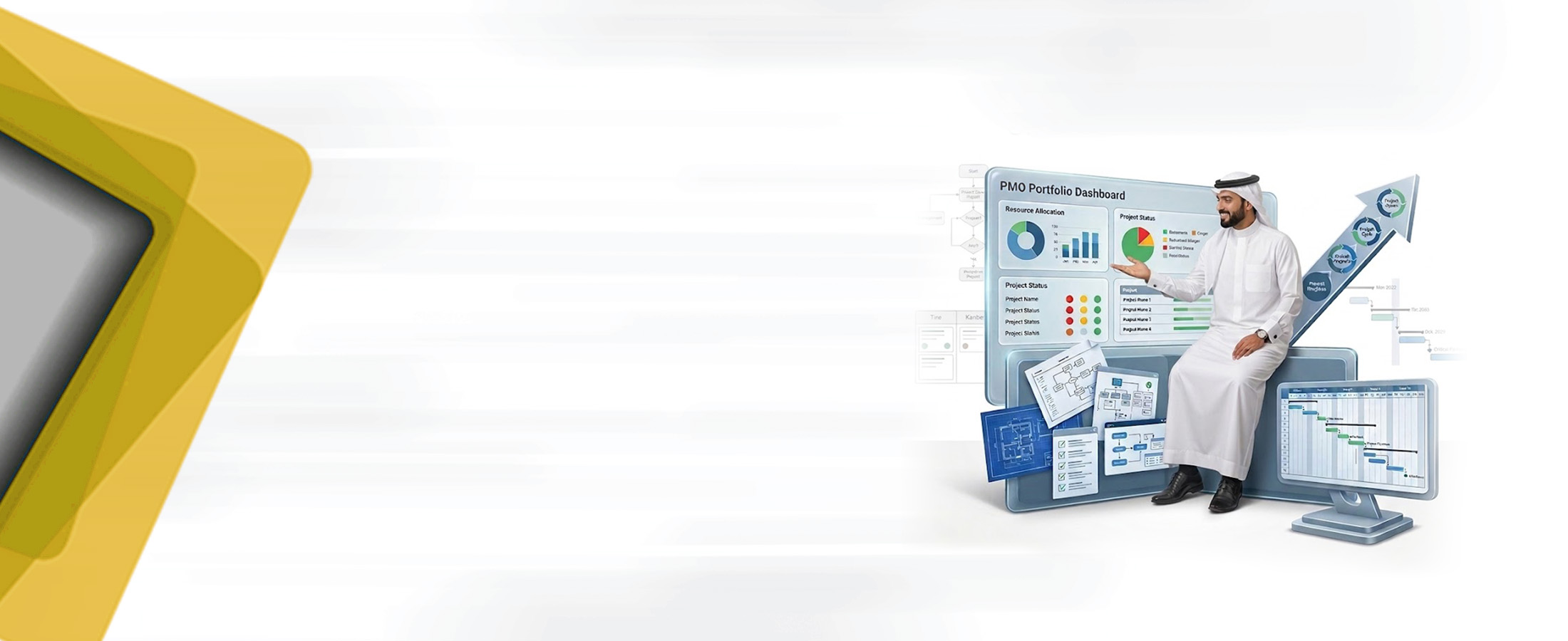 ويُسهم PMO في تحسين كفاءة تنفيذ المشاريع، وتوحيد الإجراءات، وإعداد التقارير والتحليلات اللازمة لدعم اتخاذ القرار على المستوى التنفيذي.